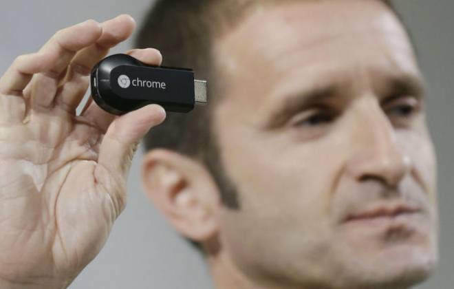 O Chromecast é um pequeno aparelho parecido com um pendrive que, encaixado à porta HDMI, transfere para a TV conteúdo de Netflix, Hulu, YouTube, entre outros. Há dois diferenciais importantes: a facilidade, já que não é preciso cabos e nem muita configuração; e o preço, apenas US$ 35. Espera-se que o produto chegue ao Brasil até o final deste mês custando R$ 199.
