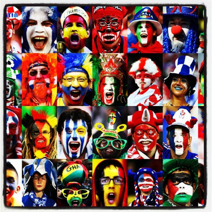A 20ª edição da Copa do Mundo começa nesta quinta-feira, às 15h30m (de Brasília) com a cerimônia de abertura. Às 17h, a seleção brasileira entra em campo contra a Croácia, na Arena Corinthians. E a própria Fifa fez uma homenagem às 32 equipes que vão participar do torneio e aos torcedores, postando uma montagem com alguns fãs a caráter.