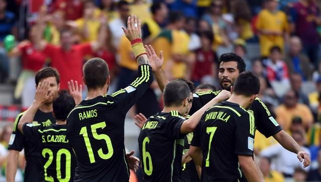 Chute a gol mesmo apenas aos 19 minutos, com Jordi Alba, que entrou pela esquerda e fuzilou para boa defesa de Ryan. Na sequência, a zaga afastou o perigo. A Roja estava mais solta, mas finalizava pouco. Aos 28 minutos, Villa pedalou, levou para o fundo e cruzou na pequena área para ninguém aproveitar.