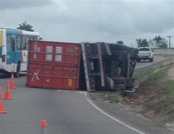 Segundo informações da Polícia Rodoviária Federal(PRF), o veículo vinha da cidade do Recife-PE com destino a Natal-RN quando em uma curva o caminhoneiro perdeu o controle da direção e o veículo tombou.