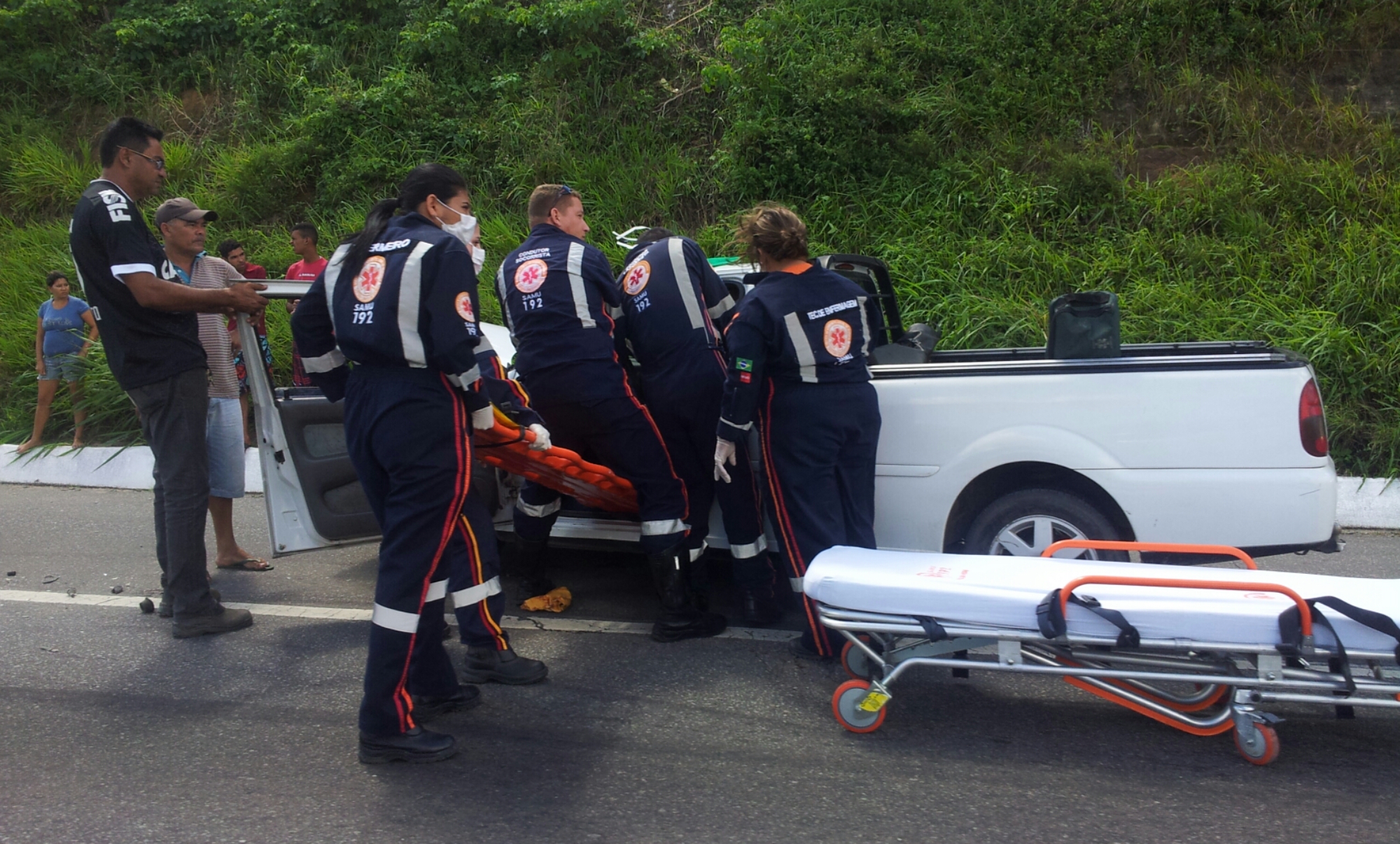 Acidente agora na Subida da barriga cheia sentido alpargatas, Uma saveiro branca bateu na traseira de uma caçamba. Polícia Federal Rodoviária já está no local e o SAMU, à vítima foi socorrida para o trauma.