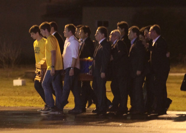 Na chegada, o caixão do ex-governador, que concorria à Presidência da República foi transportado até o carro de Corpo Bombeiros pelos filhos João e Pedro e ainda o prefeito do Recife, Geraldo Julio; e o governador João Lyra.