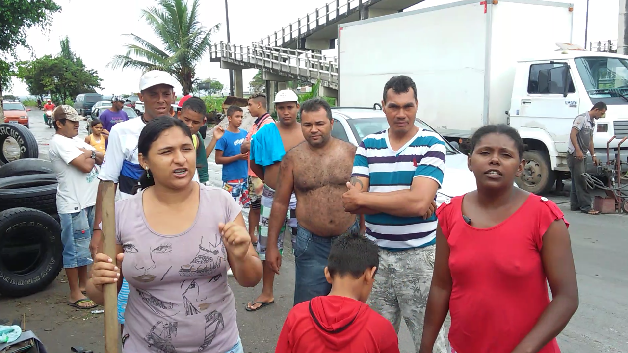 Com pás, martelos e enxadas, moradores ameaçavam cavar buracos e por fogo em pneus na via que dá acesso a um dos maiores supermercado em atacado da cidade “ATACADÃO”, impedindo assim o fluxo de veículos.
