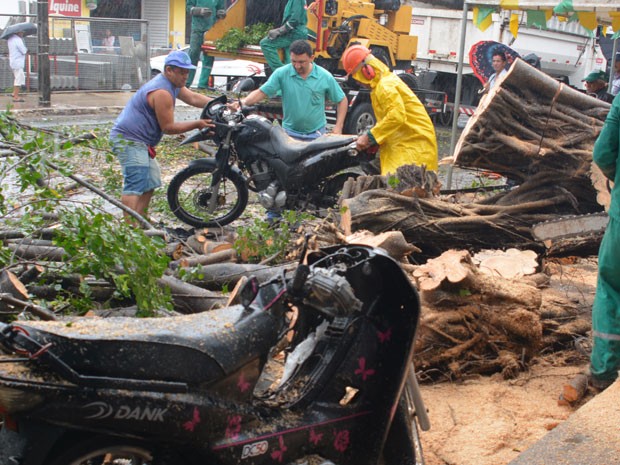 As chuvas e os fortes ventos que atingem a cidade de João Pessoa derrubaram doze árvores entre sábado (6) e esta segunda-feira (8). Entre elas, duas caíram nesta segunda-feira, no Mercado Central, no Bairro dos Estados, atingindo duas motocicletas que estavam no local, mas ninguém ficou ferido. De acordo com o chefe da Divisão de Arborização e Reflorestamento (Divar) da Secretaria de Meio Ambiente de João Pessoa (Semam), Anderson Fontes, nove das árvores que caíram são da espécie conhecida como ‘Ficus’, sendo assim frágeis ao tombamento.