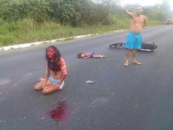Primeiras informações que cehgam, que um casal com uma criança em uma moto bateram de frente de um carro. Imagens Fortes…