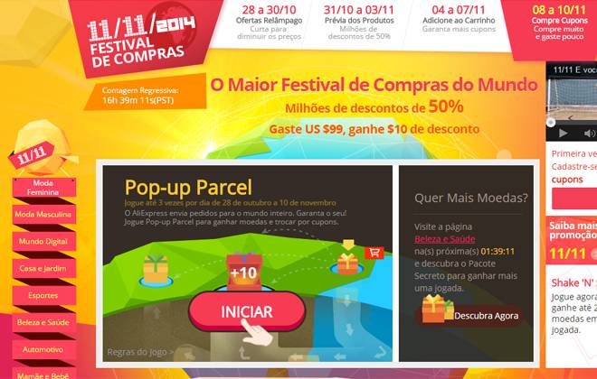 Além disso, do dia 28 de outubro a 10 de novembro, os usuários tiveram a oportunidade de coletar cupons extras por meio de jogos e outras atividades. Contudo, para usá-los junto dos descontos oferecidos pela AliExpress, é preciso trocá-los até à meia noite de hoje.