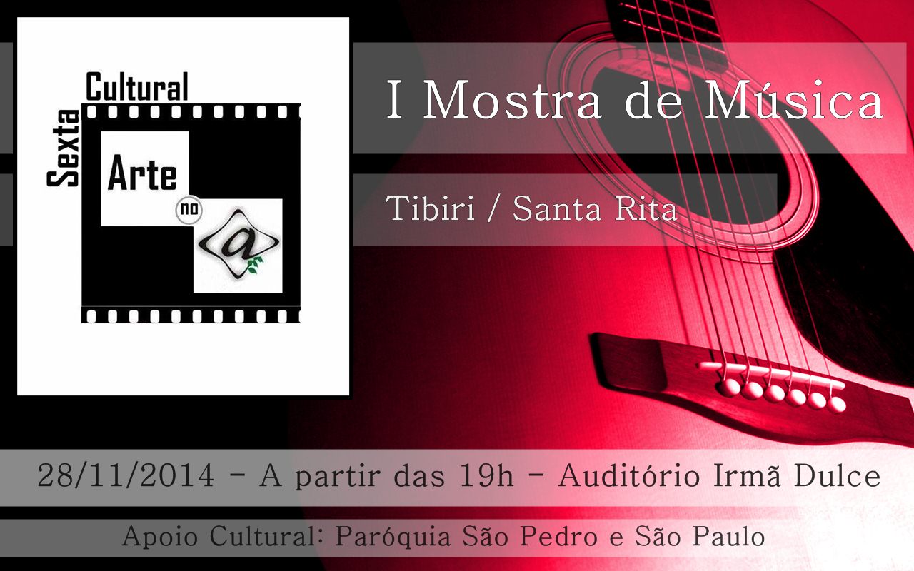 A Sexta Cultura Arte no Espaço na sua 8ª edição, estará no dia 28.11.2014, às 19h00, no Auditório Irmã Dulce, Tibiri II, Santa Rita, realizando a I Mostra de Música que conta com a participação dos artistas locais.