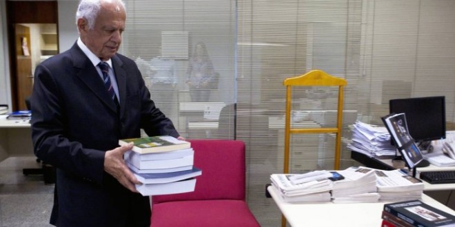 Senador Pedro Simon (PMDB-RS) encaixota seus livros e outros objetos – O Globo / Jorge William