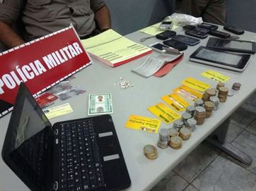 Ao chegar numa casa na localidade conhecida por Baixo Meretrício, os policiais encontraram dois homens de posse de 12 celulares, dezenas de pedras de crack, notebook, tablete, dinheiro e cartões de crédito e do Bolsa Família.