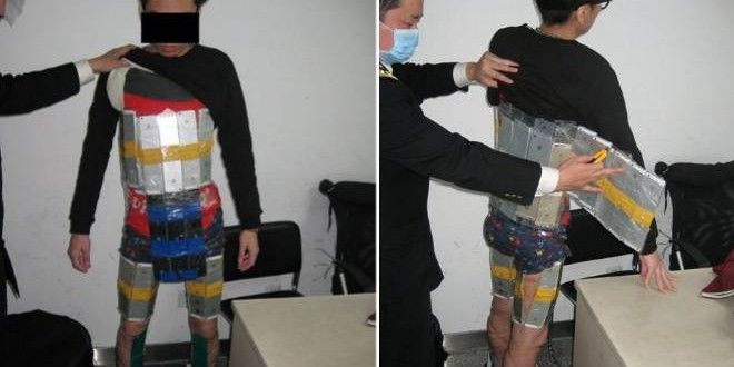 A “armadura” de celulares é uma técnica comum para contrabandistas. Os aparelhos foram presos nas coxas, no torso, panturrilhas, virilha utilizando sacos plásticos e fita adesiva. No entanto as autoridades perceberam algo estranho com o homem, que andava de forma esquisita, sem a flexibilidade normal do corpo humano, com rigidez nas juntas, algo perfeitamente compreensível para alguém que cobriu o corpo todo com telas sensíveis ao toque.