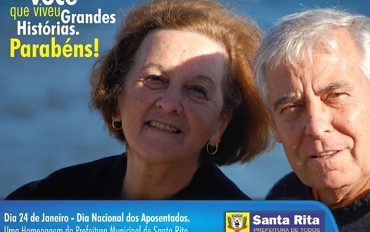 Neste 24 de janeiro, Dia Nacional do Aposentado, os votos do Prefeito Constitucional de Santa Rita Reginaldo Pereira, e do Superintendente do Instituto de Previdência Hudson Almeida, são de felicidade e prosperidade aos aposentados do nosso município.