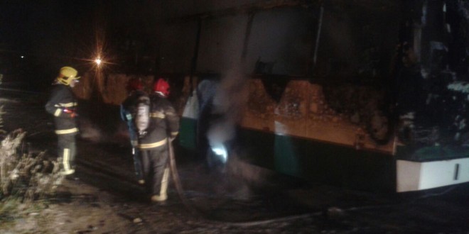 As chamas do fogo conssumia o ónibus.