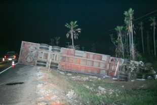 Um acidente fatal aconteceu na noite deste domingo (15) em Aracati, na BR-304, nas imediações do chamado Triângulo do Zé de Freitas. Uma carreta conduzida pelo motoristaAntônio Monteiro Neves, de 74 anos, de placas KIX-1124, de Cabo de Santo Agostinho (PE) tombou após colidir com o veículo de marca HB-20, de placas OSS 8660, do Crato (CE) e caiu numa ribanceira.