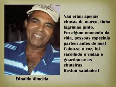 O corpo de Ednaldo Almeida está sendo velado na ‘Rosa de Saron’, o sepultamento acontecerá ás 16hs, no cemitério Santas Almas em de Santa Rita.