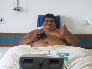 A médica Luciana Siqueira, cirurgiã do aparelho digestivo, informou que o paciente está se adaptando bem à dieta oferecida no hospital. A quantidade de alimentos ainda é grande, pois esse ponto não pode ser modificado de uma hora para outra. No entanto, as porções agora são fracionadas, servidas a cada três horas, e itens como frutas e verduras já foram introduzidos no cardápio. “A mudança de cardápio tem que ser feita devagar, com a ingestão de salada de frutas, verduras e legumes de uma forma geral. A dieta dele ainda é hipercalórica e, depois disso, a gente vai fazer a restrição de calorias que seja necessária para ajudar na perda de peso”, detalha. A cirurgiã explicou ainda que quando ele começar a perder peso, a primeira providência vai ser colocar um balão intragástrico. A cirurgia bariátrica em si será um passo bem posterior.
