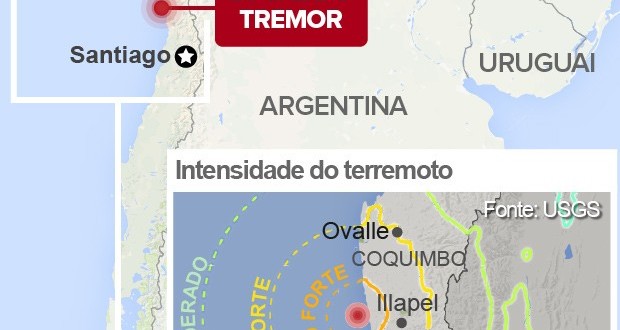 A magnitude do tremor foi 8,3, segundo o Serviço Geológico dos Estados Unidos (USGS), o serviço sismológico chileno informou 8,4. As autoridades locais determinaram a evacuação das áreas litorâneas, enquanto imagens de televisão mostravam sirenes de alerta ativadas. O terremoto de 2010, que deixou centenas de mortos no Chile, teve magnitude 8,8.