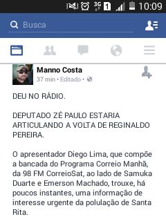 O todo poderoso das comunicações institucionais da PMSR, Manno Costa, publicou em sua página pessoal do facebook um texto fazendo insinuações sobre uma suposta manobra que o deputado Zé Paulo estaria armando com a justiça para garantir a volta de Reginaldo à prefeitura.