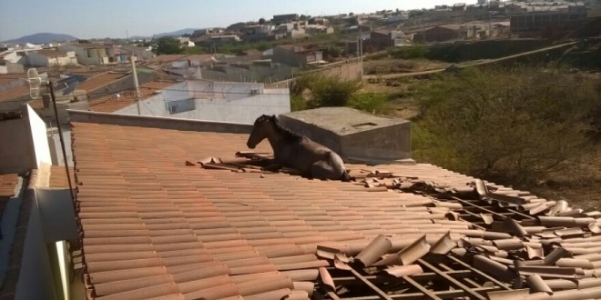 O Corpo de Bombeiros da Paraíba montou uma força tarefa para resgatar um cavalo que estava preso no telhado de uma casa na cidade de Cajazeiras, no Sertão do estado, a 450 km de João Pessoa. O fato inusitado ocorreu na manhã desta quarta-feira (11). O animal precisou ser sedado para não prejudicar o resgate.