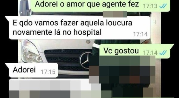 Em resposta, o amante lhe prometeu que da próxima vez seria dentro da ambulância da unidade hospitalar.
