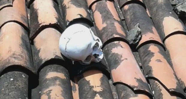 O achado macabro foi feito por um morador da região que estava limpando o telhado quando avistou o crânio pintado de branco. Aparentemente o crânio aparenta ter sofrido uma pancada, mas apenas a perícia pode comprovar o que terá acontecido.