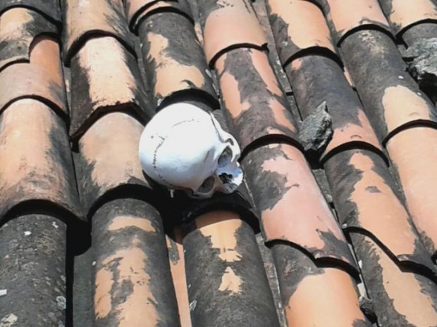 O achado macabro foi feito por um morador da região que estava limpando o telhado quando avistou o crânio pintado de branco. Aparentemente o crânio aparenta ter sofrido uma pancada, mas apenas a perícia pode comprovar o que terá acontecido.