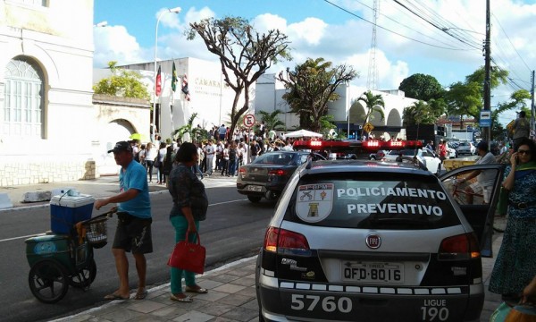 “A Polícia Militar veio depois que houve alguns confrontos entre dois grupos, uns pró e outros contra. A gente está aqui mantendo a ordem, conversando com ambos os lados. Estamos justamenta para que ninguém saia ferido e para que o patrimônio público seja preservado”, disse o comandante do 1º Batalhão de Polícia Militar, major Jobson Vinícius. De acordo com o major Jobson, foi necessário usar spray de pimenta para separar dois grupos que estavam muito exaltados.