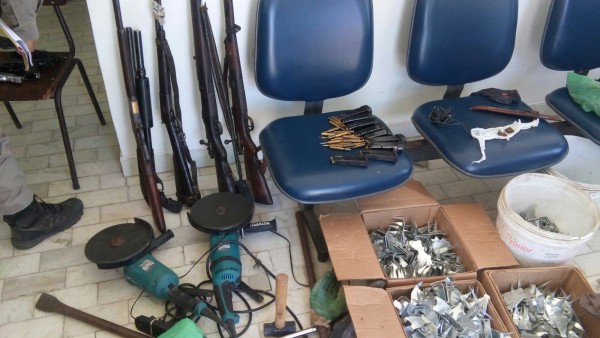Na cabine do caminhão foram encontrados quatro fuzis calibres “7.62”, uma espingarda de repetição calibre “12”, um rifle Puma, grampos, dinamites, e ainda dez coletes balísticos.