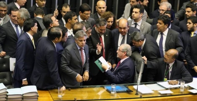 Enquanto isso, governistas abriram uma bandeira do Brasil na mesa da Câmara dos Deputados. O presidente da Câmara, deputado Eduardo Cunha (PMDB-RJ) pediu que os parlamentares realizassem as manifestações no plenário e não na mesa da Casa.