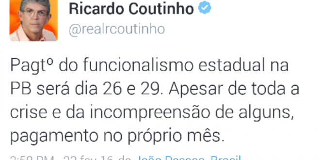 Home / POLITICA / Governador anuncia pagamento dentro do mês trabalhado na Paraíba