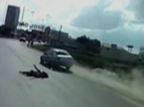 Homem foi autuado em flagrante e pagou fiança de R$ 4.400, diz Polícia Civil. Na filmagem é possível ver que o motorista atinge a vítima no acostamento.