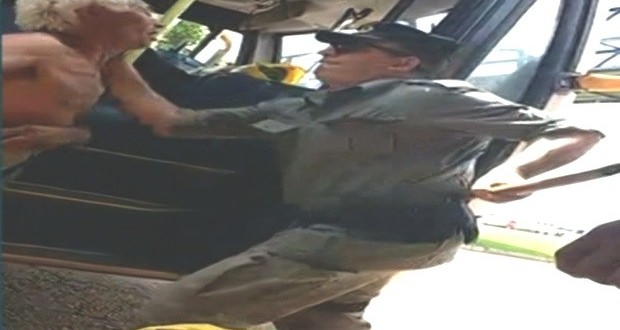 Ao chegar ao ponto de ônibus, um dos militares perguntou o que estava acontecendo. “Porque o senhor está dando trabalho aqui?”. Logo em seguida, o idoso tenta responder e encosta no peito do policial. Nesse momento, ele é agredido.