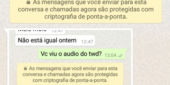 A novidade vale para todas as versões do aplicativo, em todas as plataformas. Ou seja: não importa se você usa Android, iOS, Windows Phone, BlackBerry ou até mesmo um celular antigo da Nokia. O aplicativo até mesmo começou a avisar sobre a proteção das conversas, como mostra a captura abaixo.