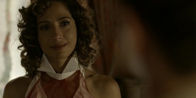 Tereza mata saudades da cidade natal enquanto cavalga pelas terras de Grotas, quando, de repente, avista uma vela cruzando o rio São Francisco. Imediatamente, a morena fica aflita: é Santo que vem em sua direção. Chocados, os dois trocam olhares, e a filha de Leonor (Marina Nery) exclama: “Não pode ser ele…Santo…”.