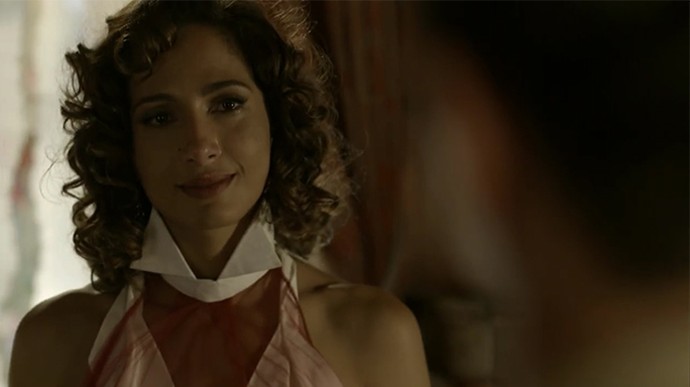 Tereza mata saudades da cidade natal enquanto cavalga pelas terras de Grotas, quando, de repente, avista uma vela cruzando o rio São Francisco. Imediatamente, a morena fica aflita: é Santo que vem em sua direção. Chocados, os dois trocam olhares, e a filha de Leonor (Marina Nery) exclama: “Não pode ser ele…Santo…”.