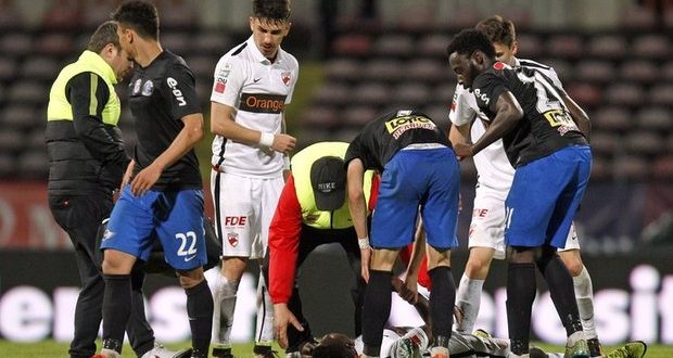 Aos 14 minutos do segundo tempo de uma partida com o Viitorul Constata, Ekeng caiu na grama.