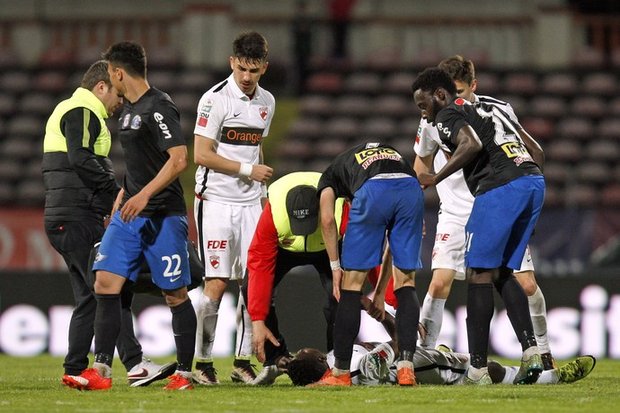 Aos 14 minutos do segundo tempo de uma partida com o Viitorul Constata, Ekeng caiu na grama.