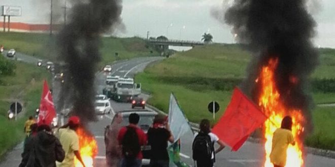 Um grupo de militantes de esquerda ligado ao Movimento dos Sem-Terra e da Central Única dos Trabalhadores, ocupam desde às 4h30 da manhã, a garagem da Transnacional no Cristo, a estacão da CBTU no Centro e trechos da BR-230, em Bayeux e BR-101, na saída para Recife.