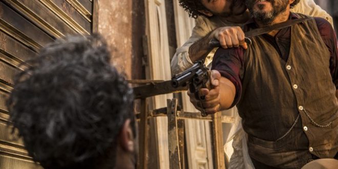 Cícero (Marcos Palmeira) é mesmo um mau caráter! Ele esperou Santo (Domingos Montagner) sair do encontro com Tereza (Camila Pitanga) e pegou o produtor pelas costas. Sem dó nem piedade, o jagunço acertou socos e chutes no rival. No momento em que ele se arma para dar o golpe fatal, com o rival na mira de seu revólver, Martim (Lee Taylor) aparece de surpresa, segura a mão do empregado e ordena: “Para, Cícero, agora!”.