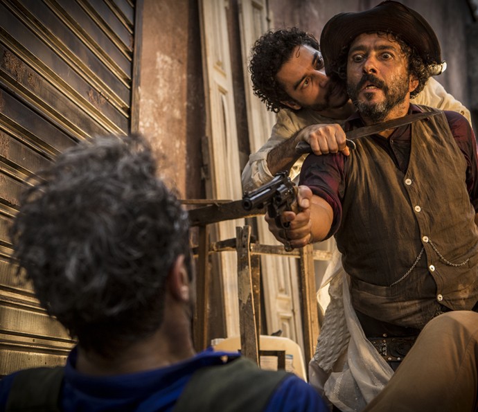 Cícero (Marcos Palmeira) é mesmo um mau caráter! Ele esperou Santo (Domingos Montagner) sair do encontro com Tereza (Camila Pitanga) e pegou o produtor pelas costas. Sem dó nem piedade, o jagunço acertou socos e chutes no rival. No momento em que ele se arma para dar o golpe fatal, com o rival na mira de seu revólver, Martim (Lee Taylor) aparece de surpresa, segura a mão do empregado e ordena: “Para, Cícero, agora!”.