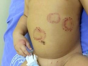 De acordo com uma médica do hospital, a criança tinha marcas de mordidas, hematomas de espancamento por todo corpo e ferimentos no pênis. A família negou ao G1 que tenha ocorrido violência contra o bebê.