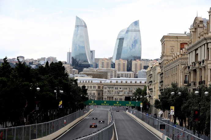 O circuito Azeri impressiona pelo contraste entre a arquitetura antiga com a contemporânea, além do misto entre longas e largas retas com curvas fechadas e estreitas. Em um trecho do circuito, os carros chegam a circular em “mão dupla”, algo que só existe neste circuito na F1. Fica a dúvida de como será a remoção de um carro caso um acidente no trecho do castelo, com largura de 7,6 m. O que chamou a atenção foi o tempo que o guindaste levou para remover o carro do acidentado de Daniel Ricciardo na curva 15: quase 10 minutos (veja mais sobre o incidente abaixo).