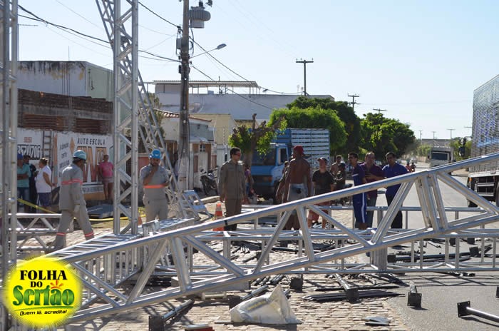 Durante uma montagem da estrutura do palco do São João em Sousa, próximo a Rua do estádio “O Marizão”, três operários sofreram uma violenta descarga elétrica.