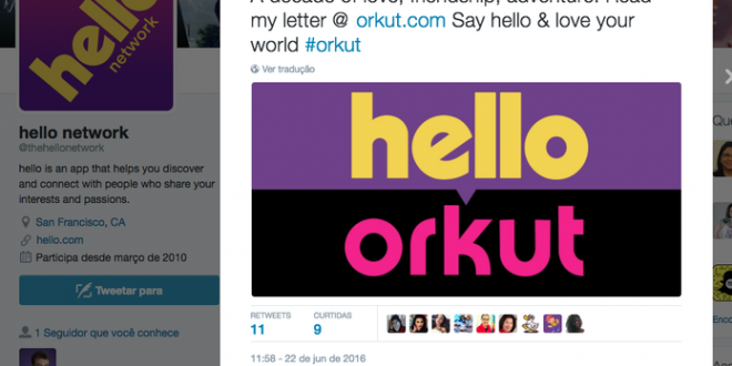 O engenheiro Orkut Buyukkokten, criador da finada rede social que leva o seu nome, publicou uma longa postagem nesta quarta-feira (22) para lançar seu projeto atual, a rede social Hello. Segundo Orkut, o novo site é “a primeira rede social construída através de amizades profundas, [desenvolvida] para ajudá-lo a conectar-se com pessoas que compartilham das suas paixões”.
