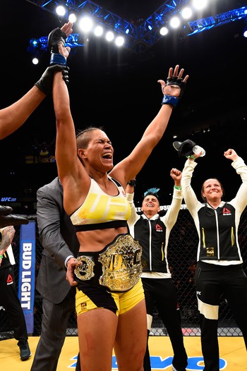 – Acho que todo lutador tem a chance de mudar a sua maneira de lutar e sou esse tipo de lutadora. Sempre busco uma alternativa para fazer as coisas acontecerem na minha vida. A Miesha é uma oponente muito difícil, respeito a Miesha demais, mas sou a nova campeã. Há 10 anos venho trabalhando muito forte e agora me sinto muito bem para voltar para o Brasil. É para você, vó, estou voltando. Há um ano não vejo minha família, esperando melhor momento para voltar e vou levar isso (o cinturão) comigo. Logo no começo, quando ela começou a ficar muito machucada, controlei um pouco e bati mais forte para ela não voltar, porque sabia que ela voltaria mais forte no segundo round – afirmou Amanda, emocionada com a vitória.
