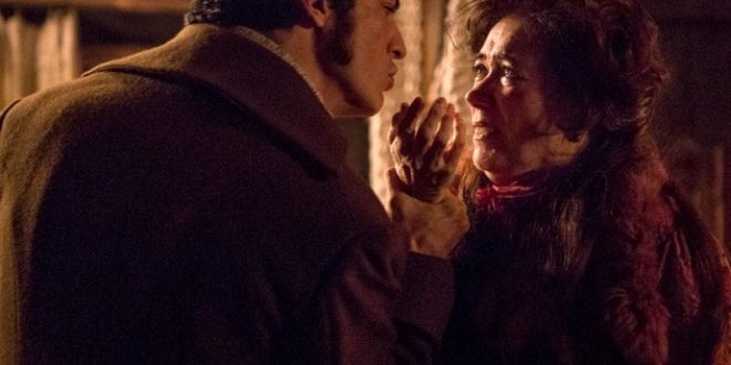 Rubião quer que Virgínia fique longe de sua noiva (Foto: Felipe Monteiro/TV Globo)A máscara de bom moço de Rubião (Mateus Solano) deve cair em breve em Liberdade, Liberdade. O intendente de Vila Rica anda todo atencioso com Virgínia (Lilia Cabral), sua mãe biológica, mas no fundo, isso não passa de uma tática para impressionar Joaquina (Andreia Horta). Mas o teatro tem limite, e Rubião será capaz de mandar matar a própria mãe…