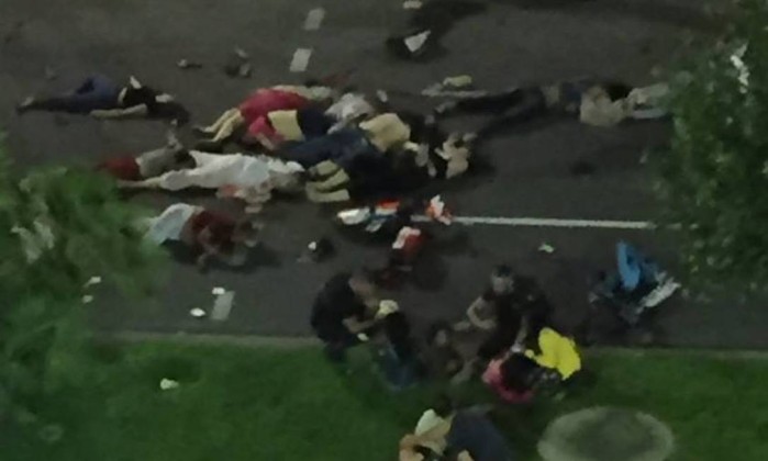 De acordo com o jornal francês Le Monde, um caminhão avançou sobre a multidão que estav reunída na Promenade des Anglais, em Nice, para assistir à queima de fogos de 14 de julho, o Dia da Bastilha.