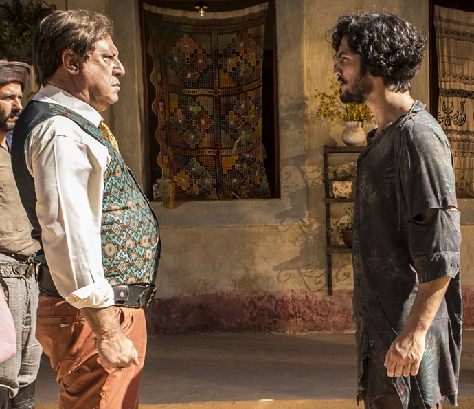 É só Afrânio (Antonio Fagundes) e Carlos (Marcelo Serrado) chegarem perto de Miguel (Gabriel Leone) e Olívia (Giullia Buscacio), no bar de Chico Criatura (Gésio Amadeu), para a população ficar apreensiva. O coronel se intromete na conversa sobre os projetos do neto, que trata logo de despachar o avô dos negócios. Quando o clima vai ficando pesado, os jovens decidem deixar o local, mas o Saruê insiste em provocar.
