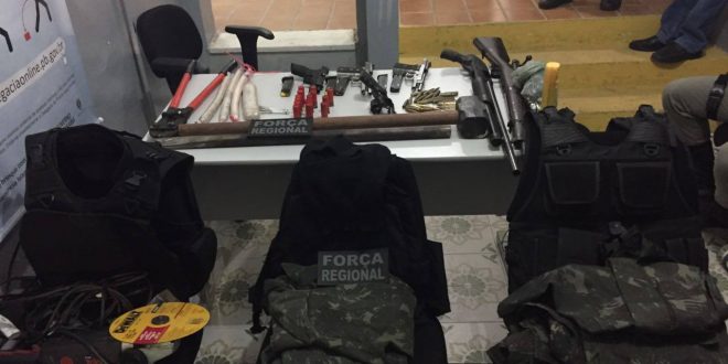 No carro foram encontrados coletes à prova de bala, armas longas, revólveres, pistolas, munições, roupas, luvas, toucas ninjas, alicate tesourão, lanternas, marretas, cinco gandolas camufladas, óculos de sol, e ainda vários explosivos. Conforme a PM, a suspeita é de que o grupo se preparava para praticar explosões a caixas eletrônicos.
