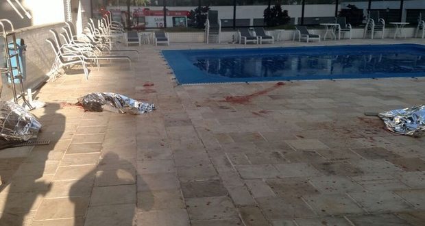 “O que se sabe é que a mulher da vítima estava com cortes no pescoço, morta na cama. Os dois filhos e o homem estavam caídos no vão da piscina. As informações iniciais obtidas no local do crime apontam uma suspeita inicial de que ele teria matado a mulher com golpes de faca, jogado as duas crianças e depois se jogado. Mas não descartamos outras linhas”, explicou o delegado.