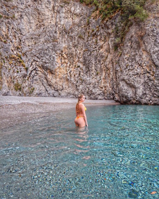 Modelo, que está curtindo viagem pela Europa, visitou Positano nesta quarta-feira, 7,